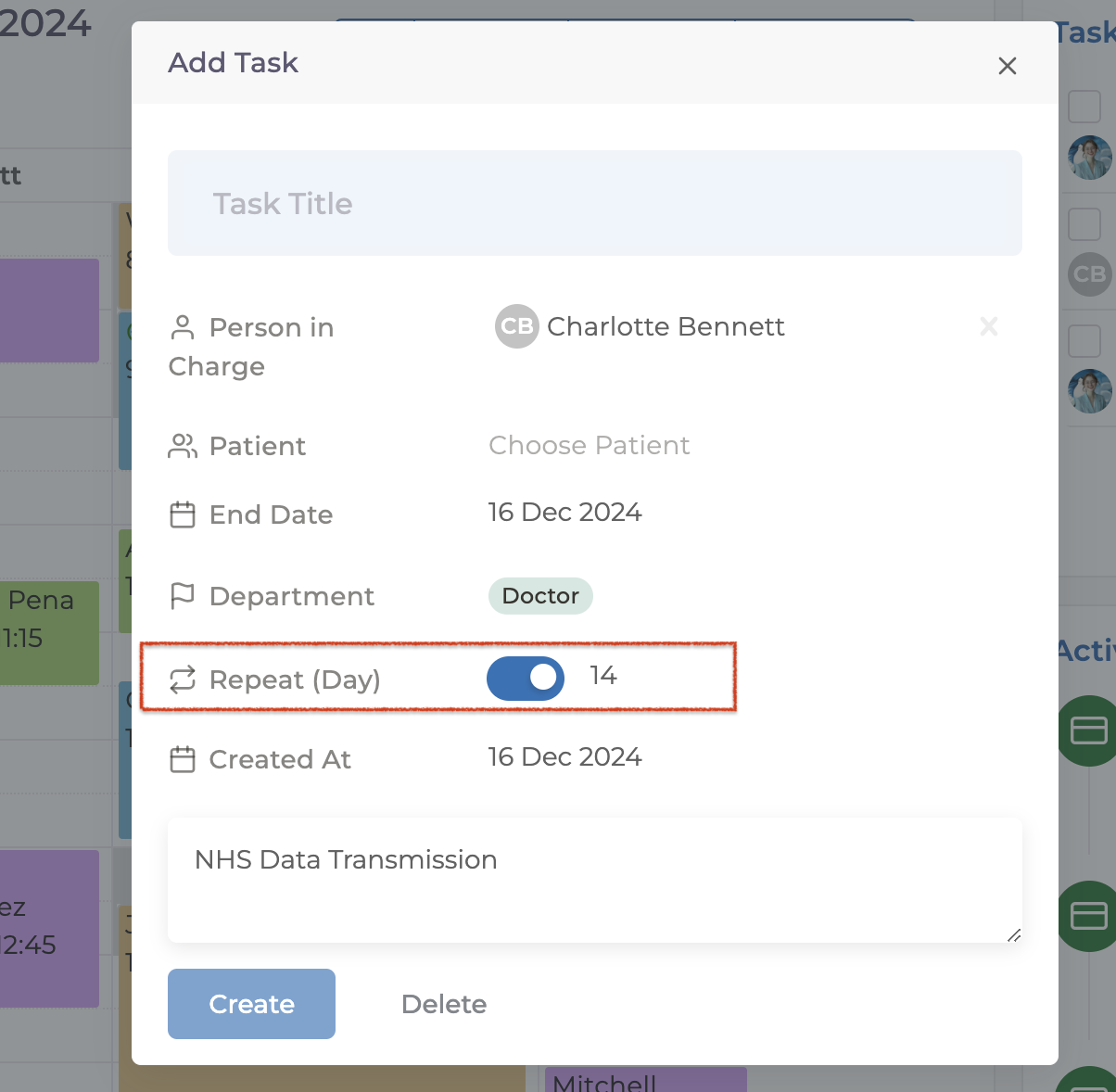 After filling in these details, click the "Create" button to create your recurring task.