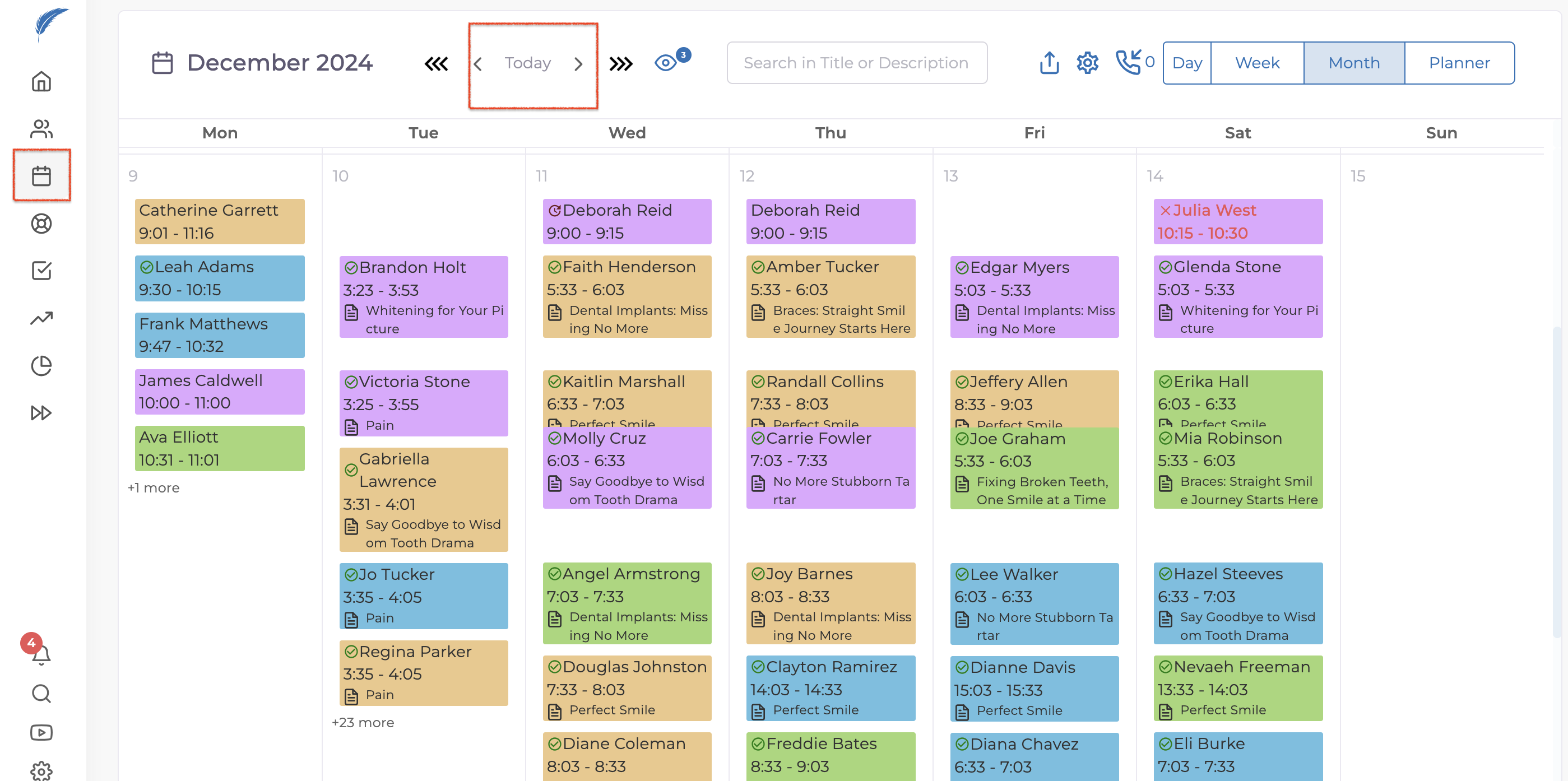 Navigating between dates is a crucial feature for reviewing, canceling, or creating new appointments. There are several ways to switch between dates.