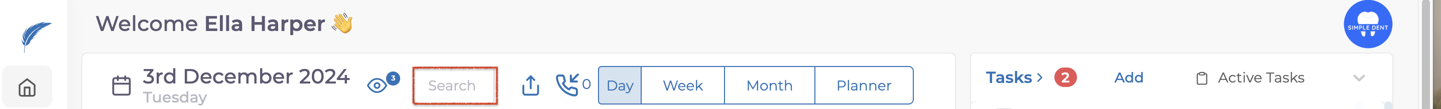 Note: When searching by doctor's name, it may be difficult to find the relevant appointment because the doctor's name is included in the appointment title. However, if you enter both the doctor's name and the patient's name in the search bar simultaneously, you will be able to quickly locate the appointment.