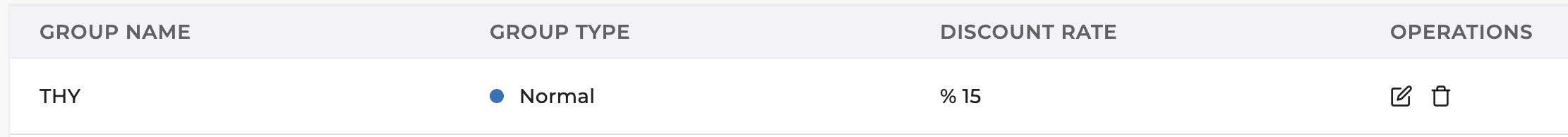 After selecting the group type and, if applicable, entering the discount rate, click the "Create" button to save the group. Once the process is complete, the groups will be listed as shown in the image below.