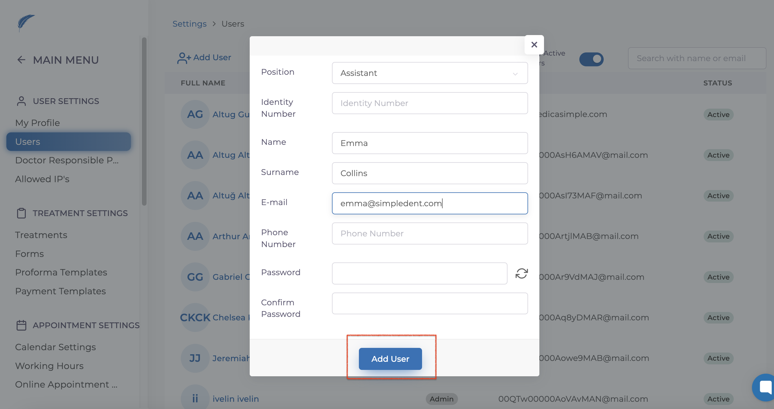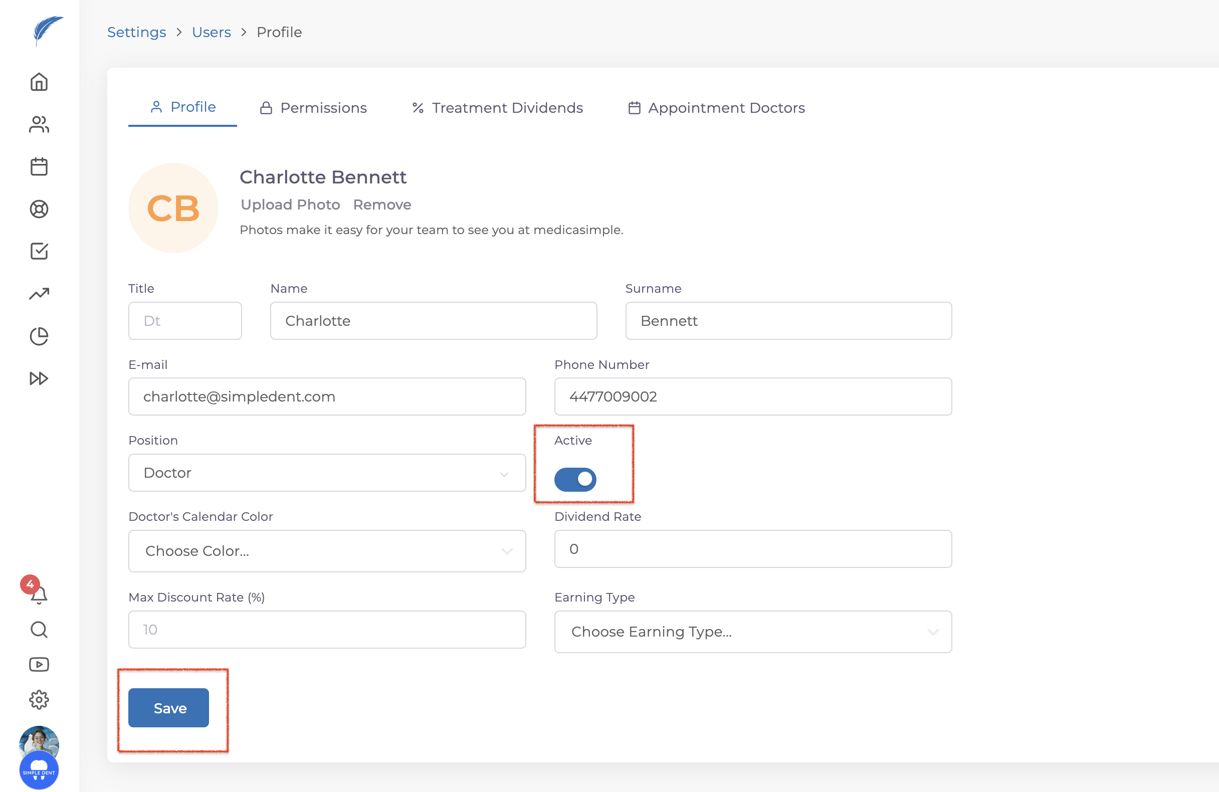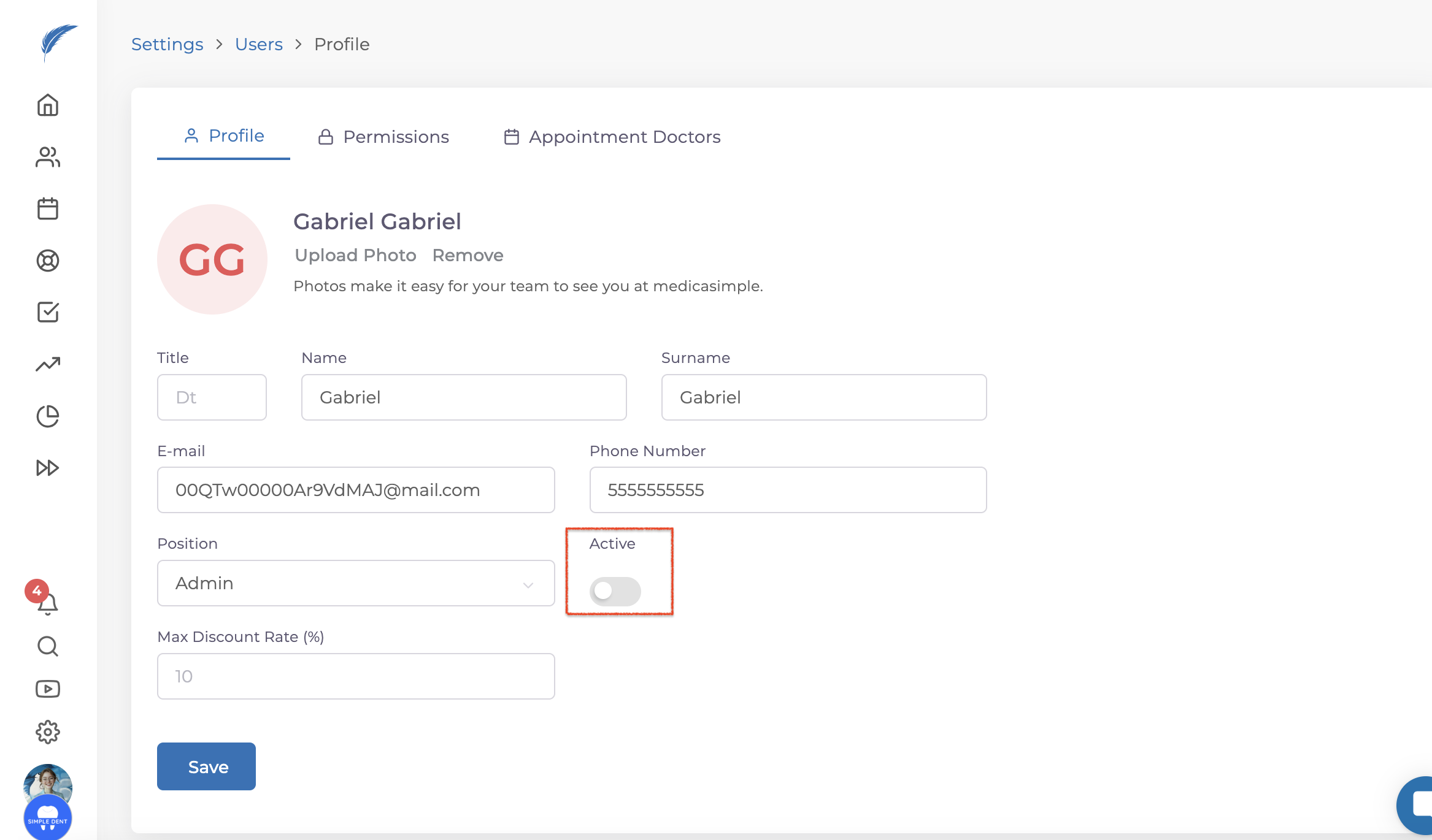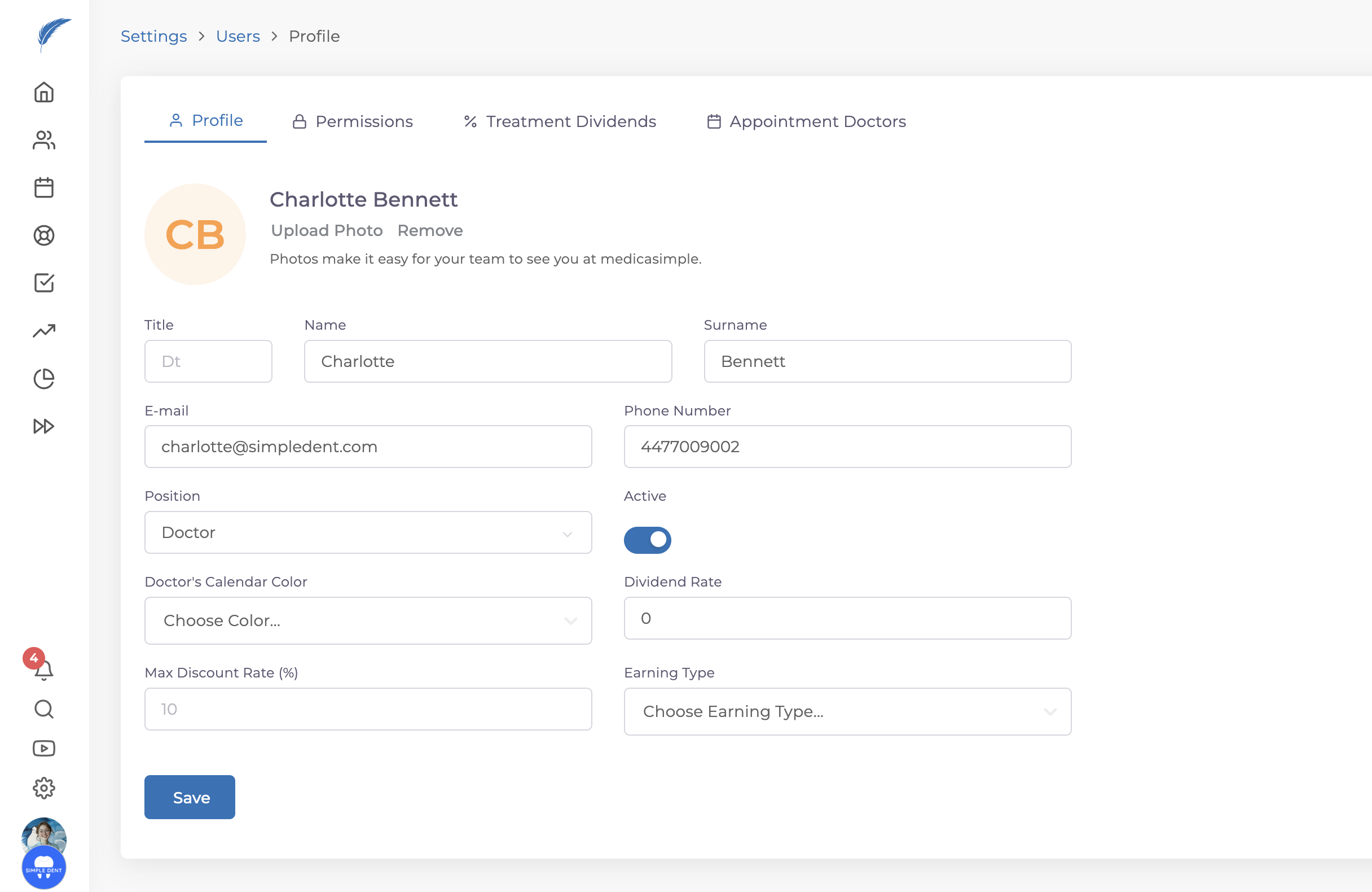 With Medicasimple, you can update information for users such as phone numbers, email addresses, positions within the clinic, and profile pictures. You can also add new users if needed.