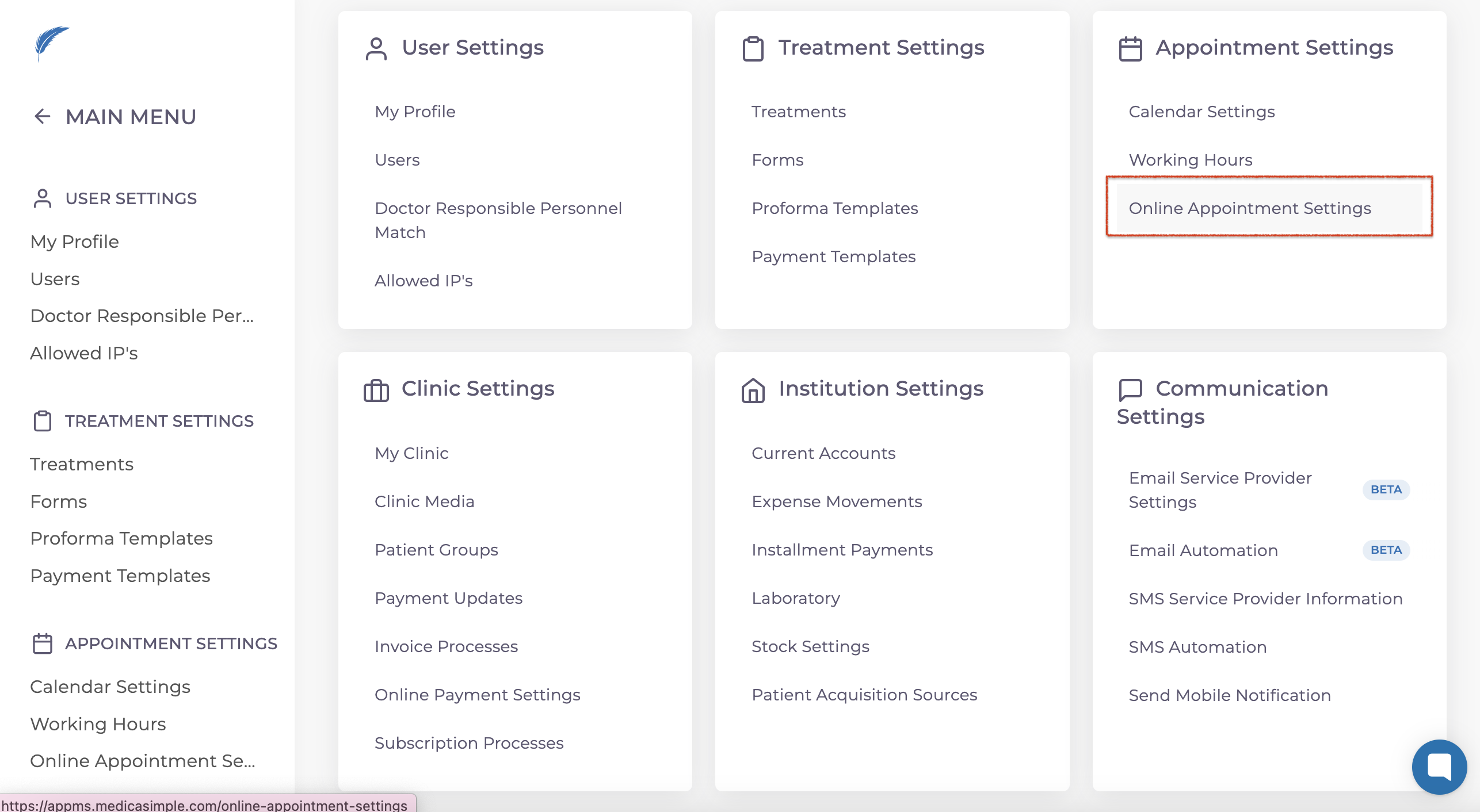 Medicasimple provides you with the ability to offer online appointments to your patients. This process might take some time, but once the settings are configured, you can easily send the online appointment link to your patients.