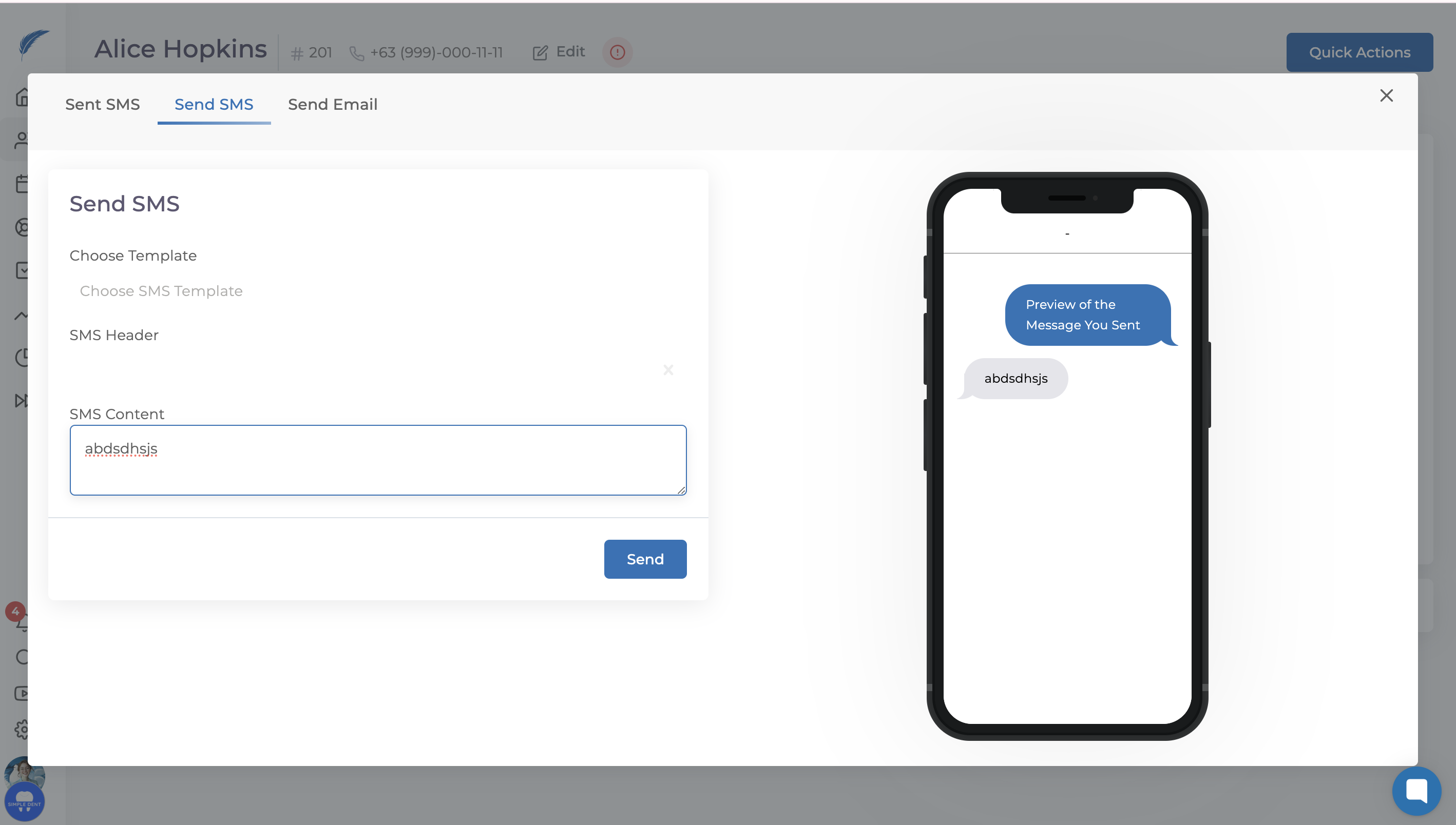 On the right side of the screen, you'll see a preview of how your message will look to the recipient. Once your SMS is ready, click the Send button to deliver your message.