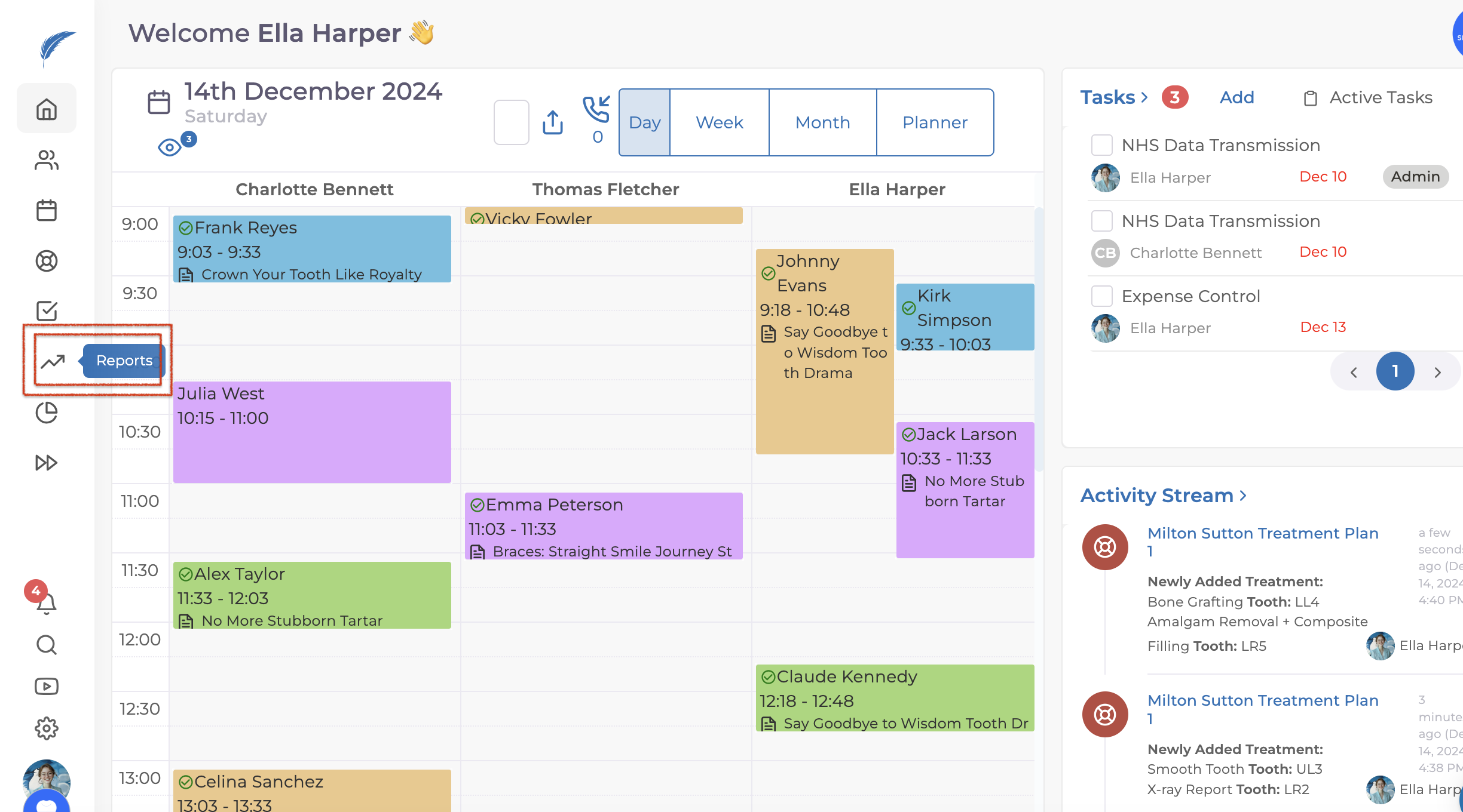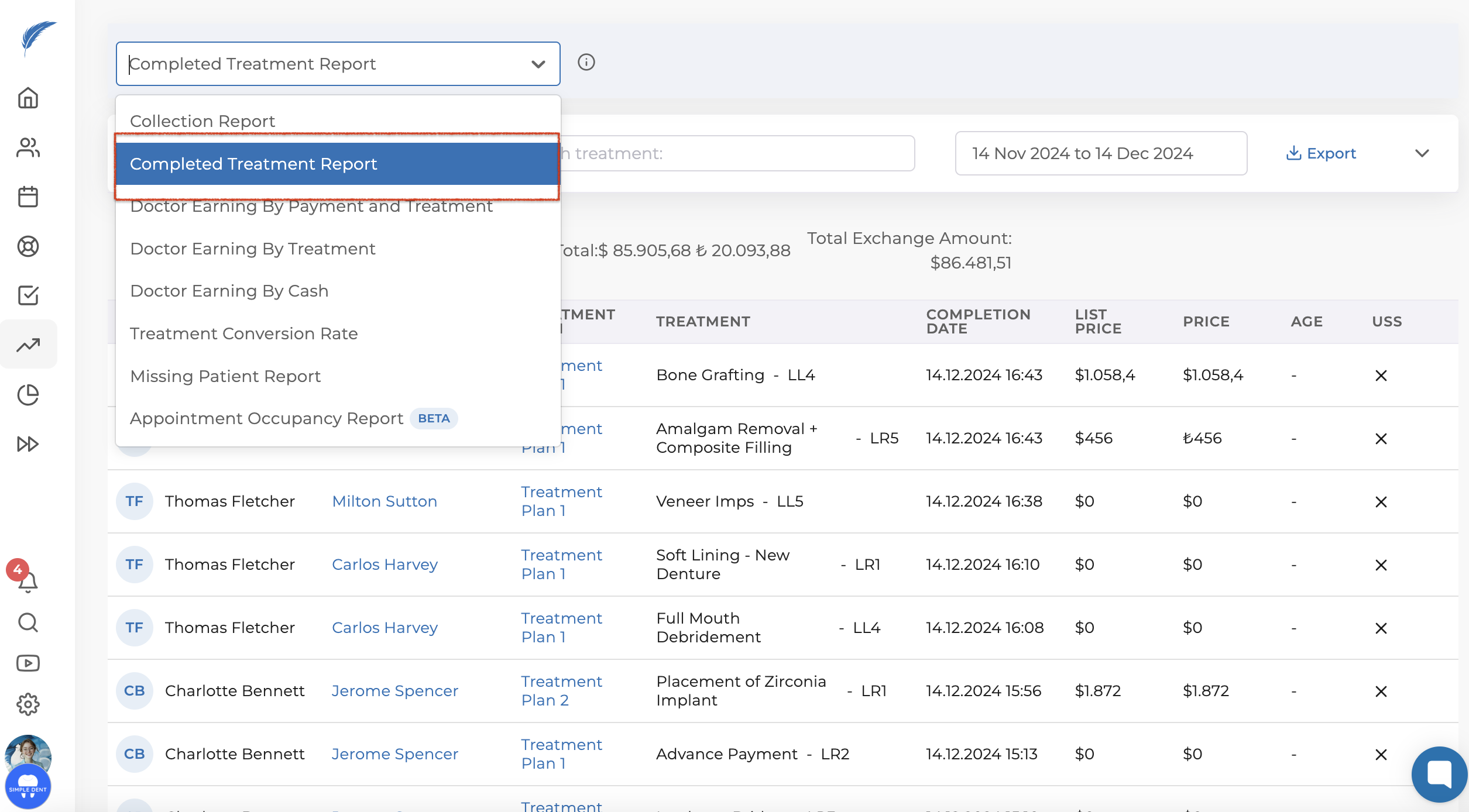 Completed treatment reports are a reporting page that shows the total of the treatment plans performed for your patients in your clinic.