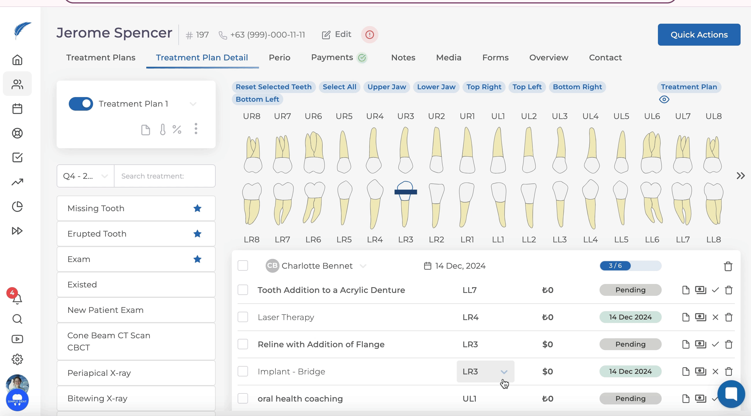 First, navigate to the treatment plan and locate the treatment item you want to modify.