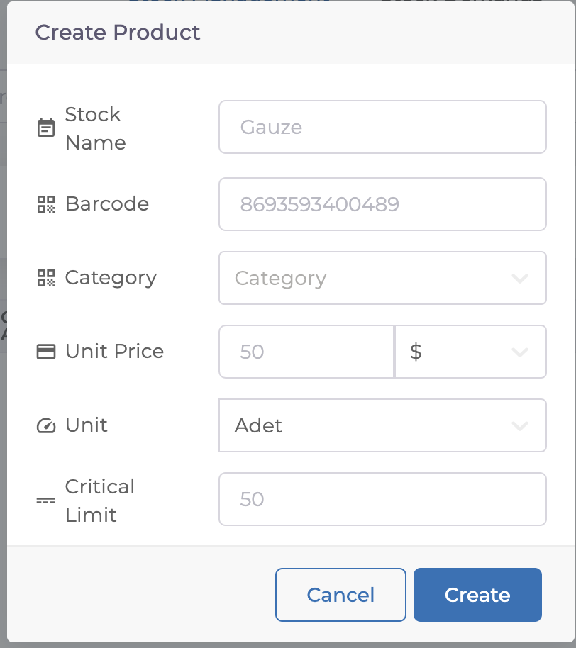 After entering the stock management window, click on the barcode icon to add a product. Scan the barcode with your phone camera and fill in the remaining information to add the product.