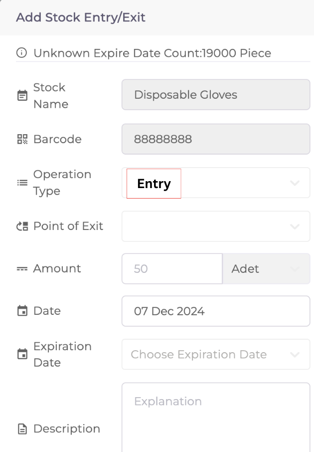 2. Enter Count Result: Input the quantity obtained from the stock count.