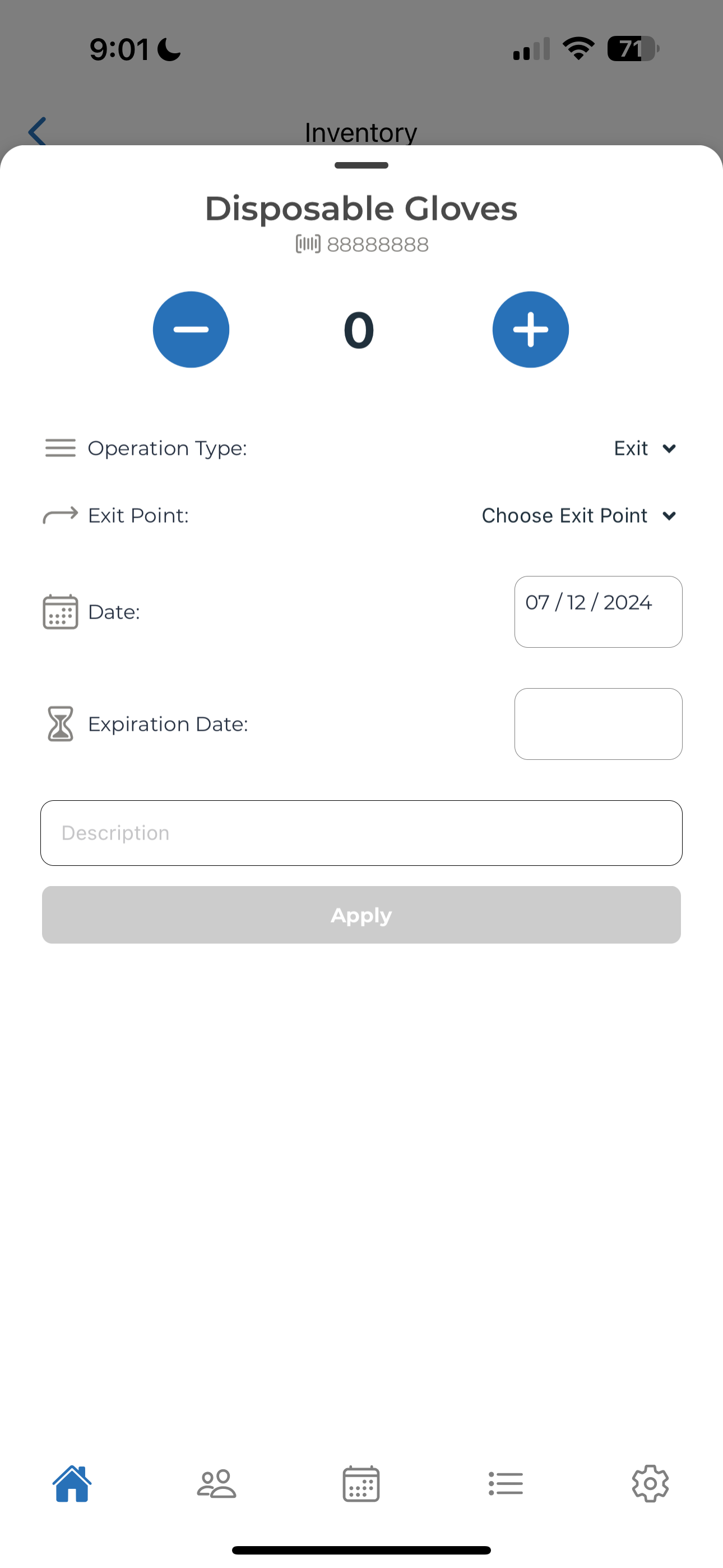 Note: To use the inventory feature, the user must have the necessary permissions.