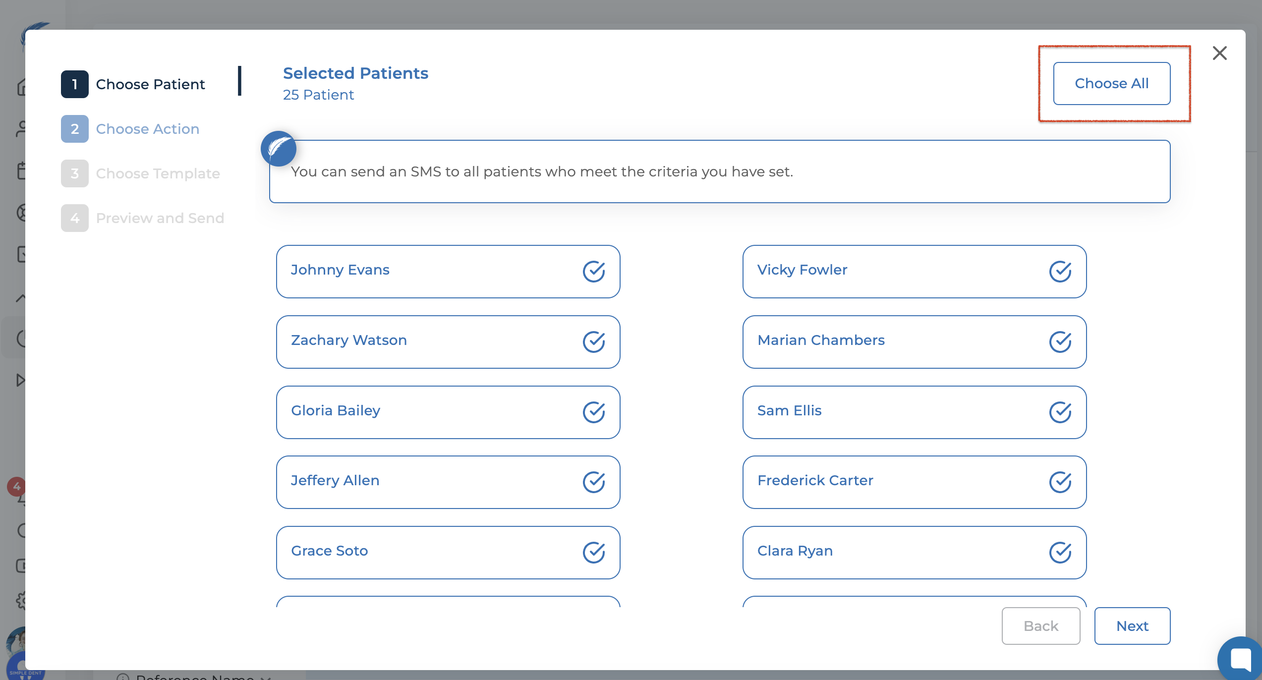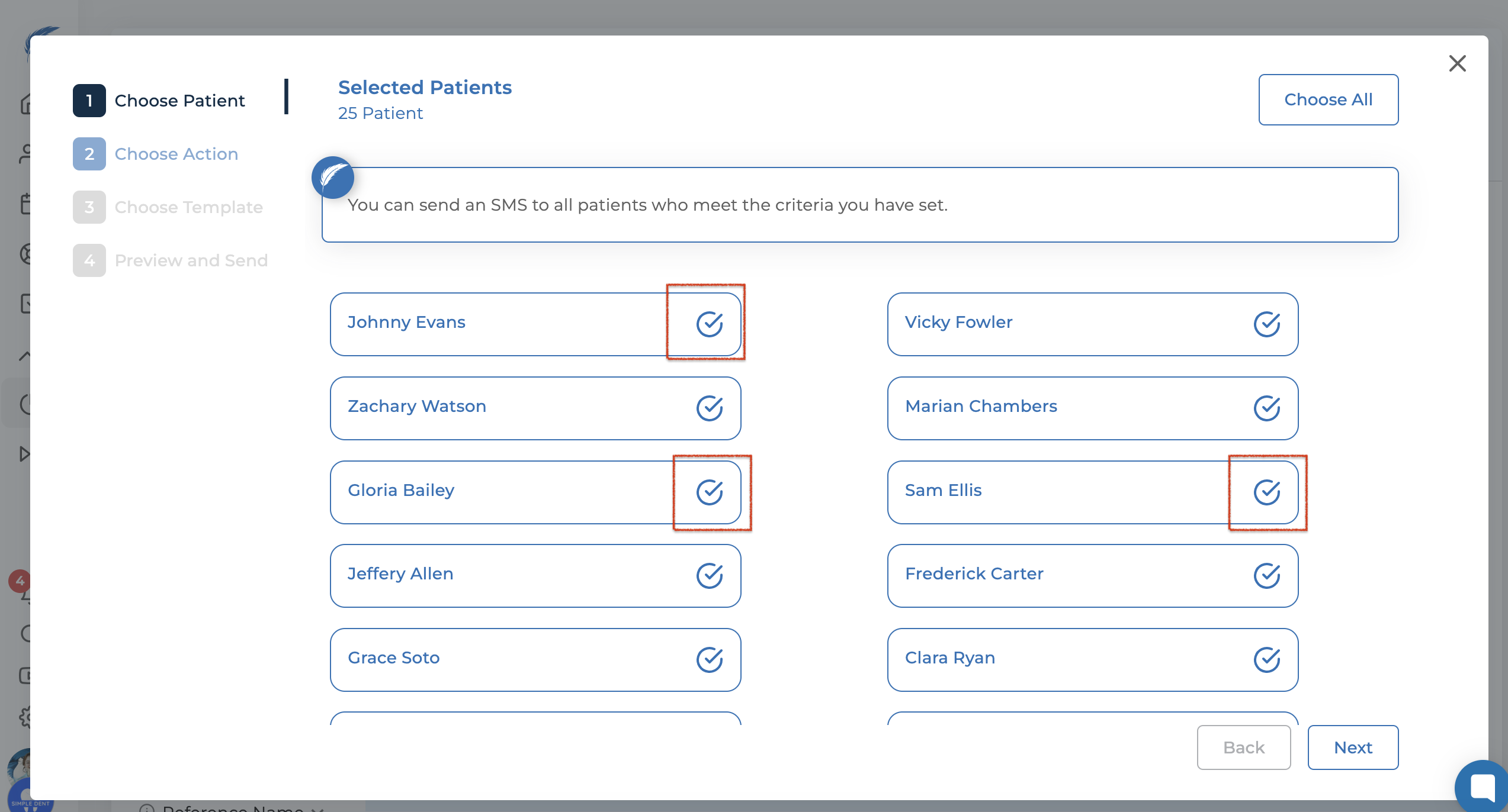If you want to select specific patients, click the checkboxes next to the patient names and then click the "Next" button.