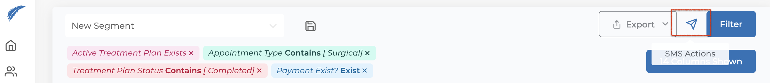 Once you complete these steps, your patient segment will be saved under the name you assigned. When you go to the Patient Segments page, you will be able to filter from the saved segment.