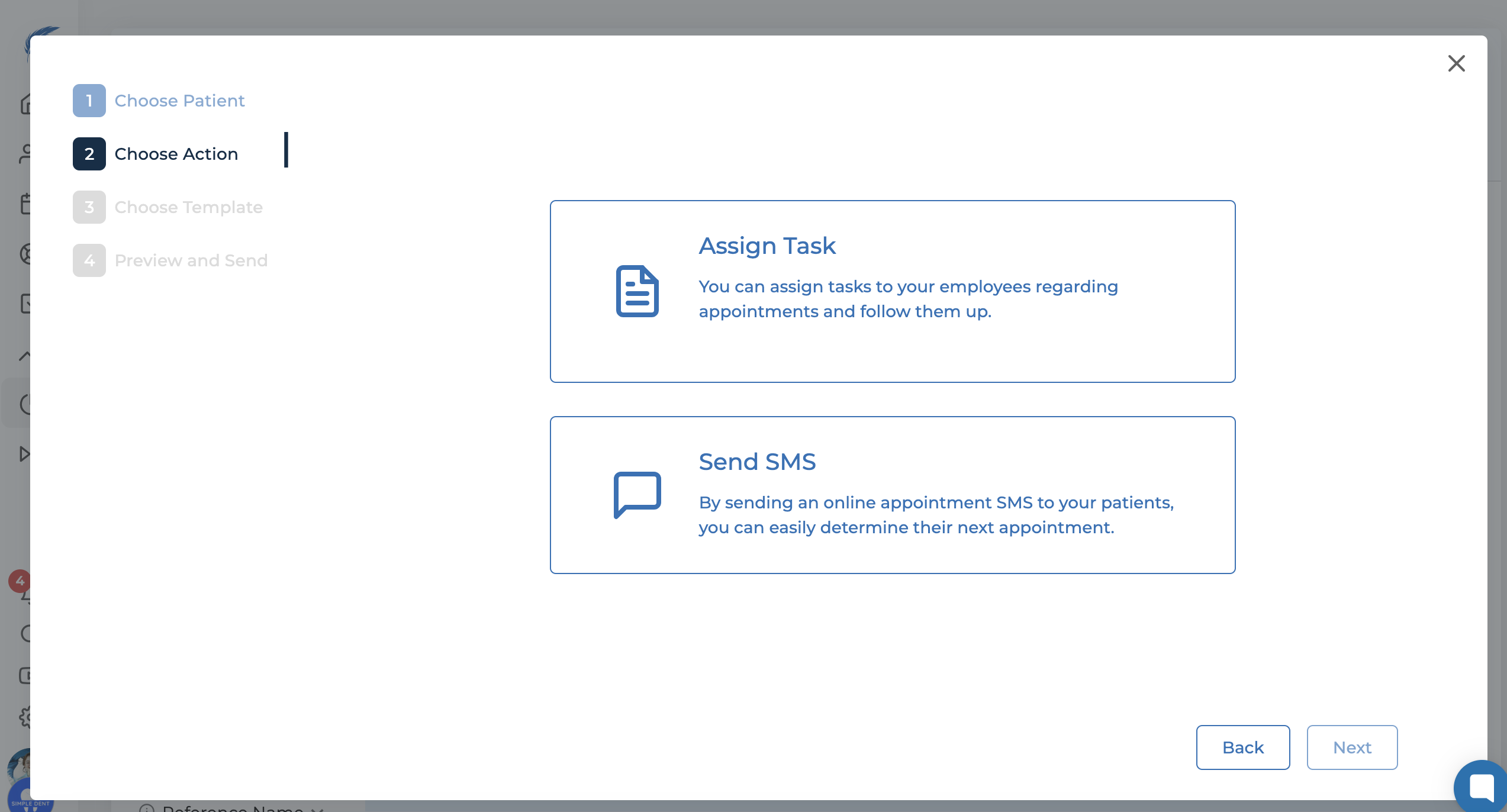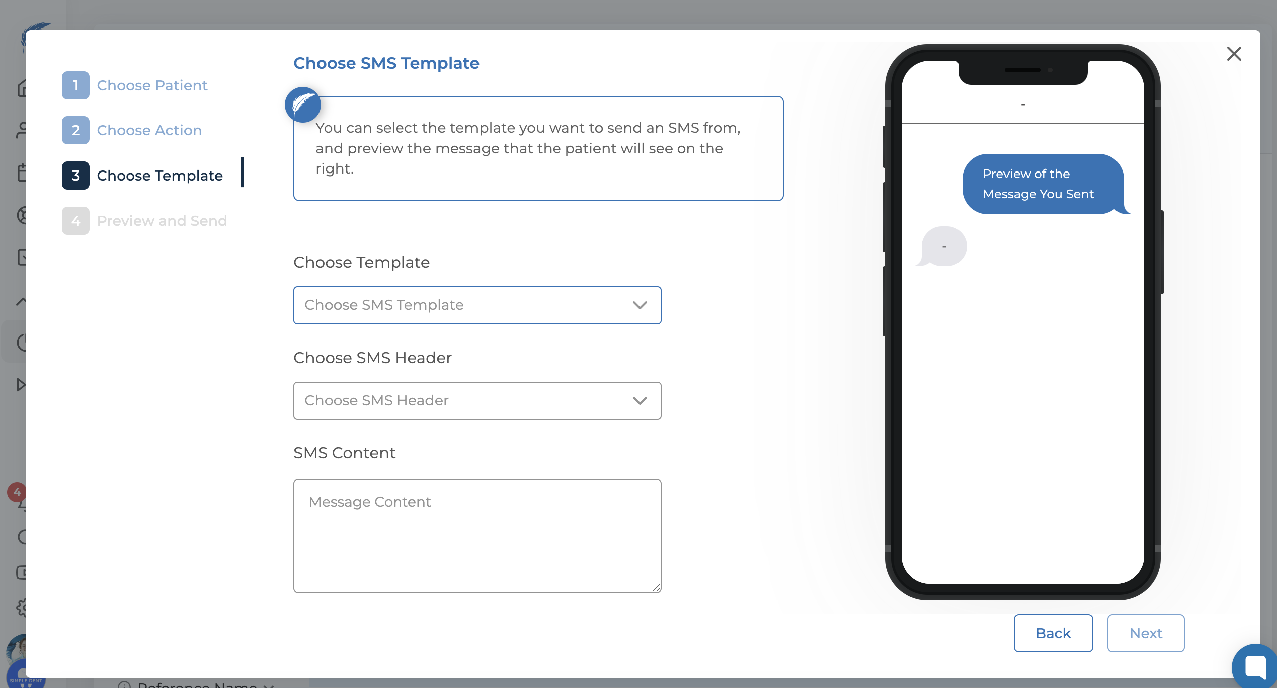 In the final window of this section, you can preview your SMS and send it to the selected patients.