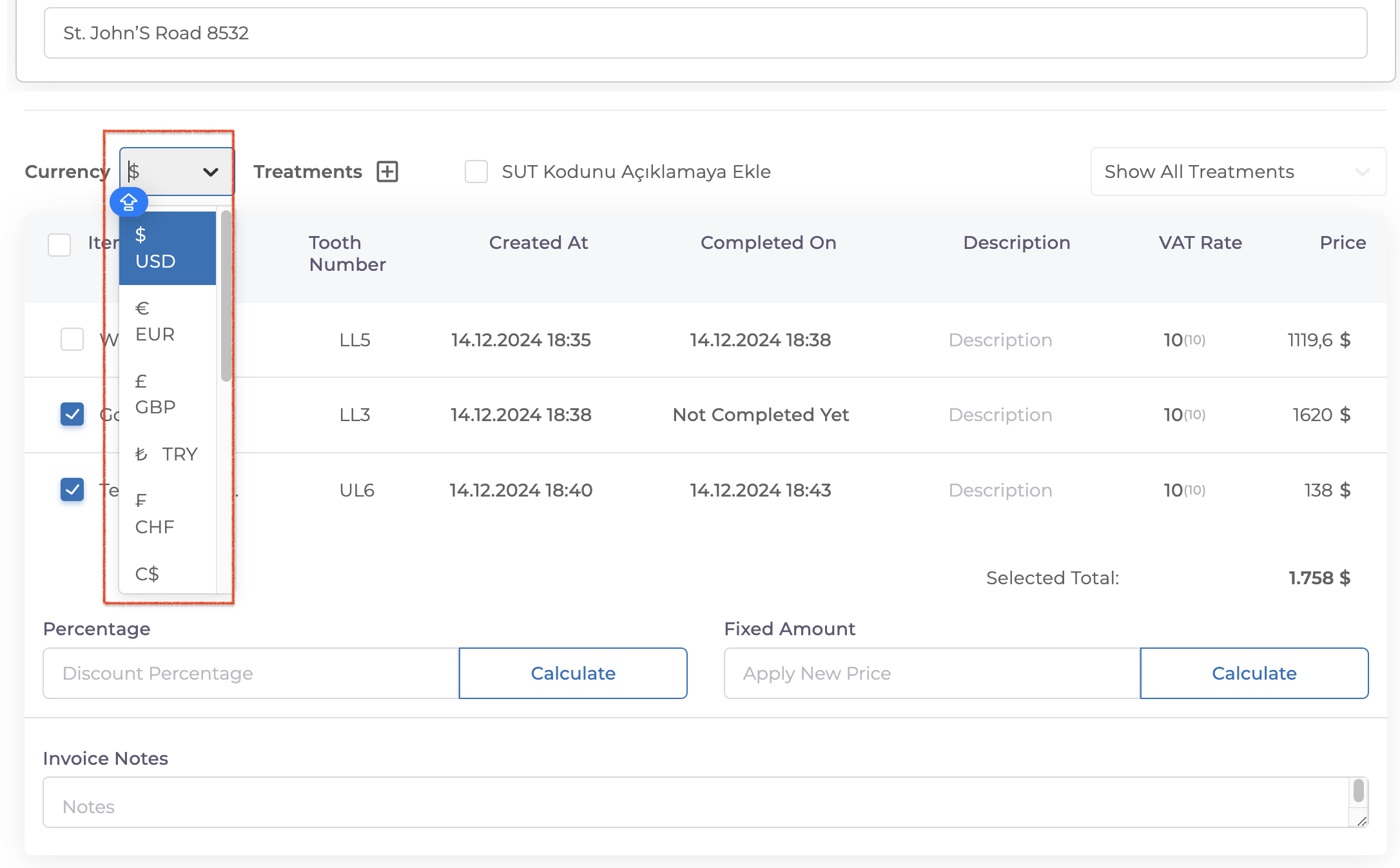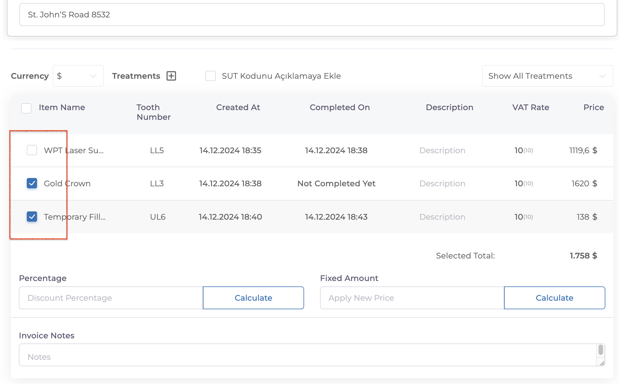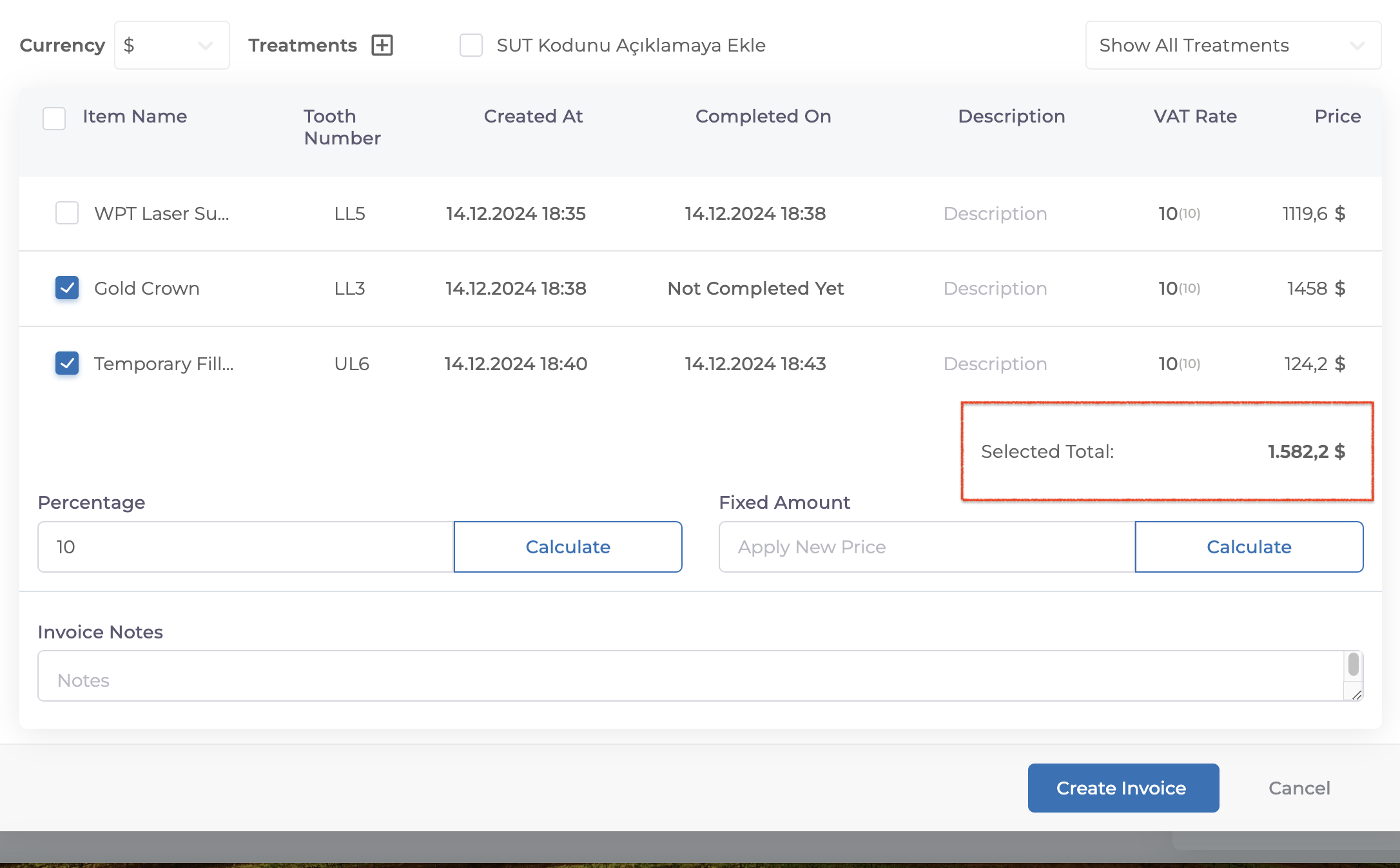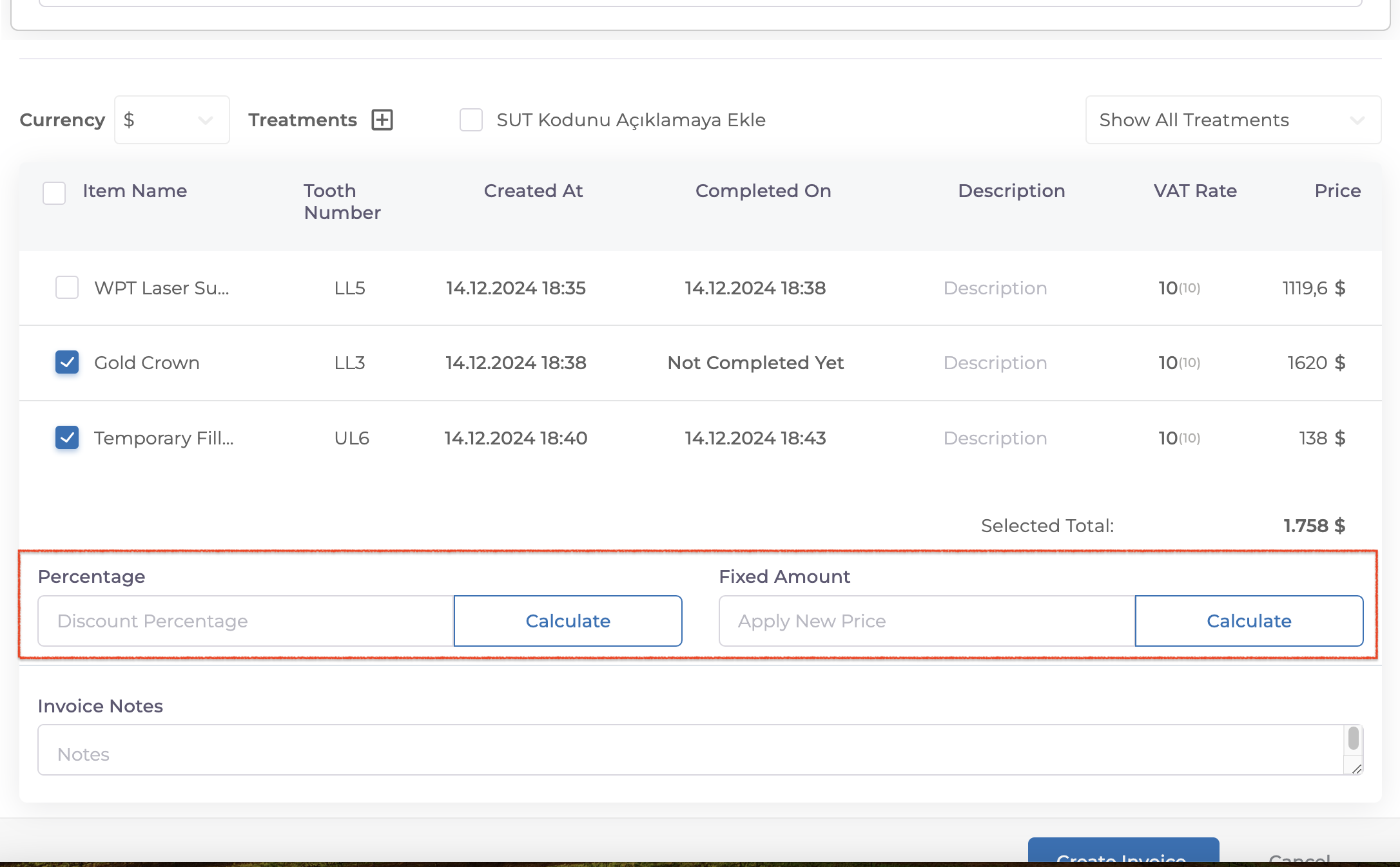 After entering the required information, Use the button in the top-right corner to filter treatments based on their status: Done, Not Done, or All.