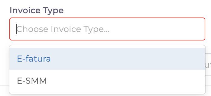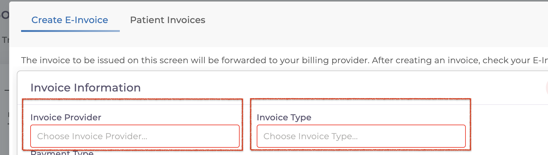 In the required fields, choose the appropriate Invoice Provider and Invoice Type.