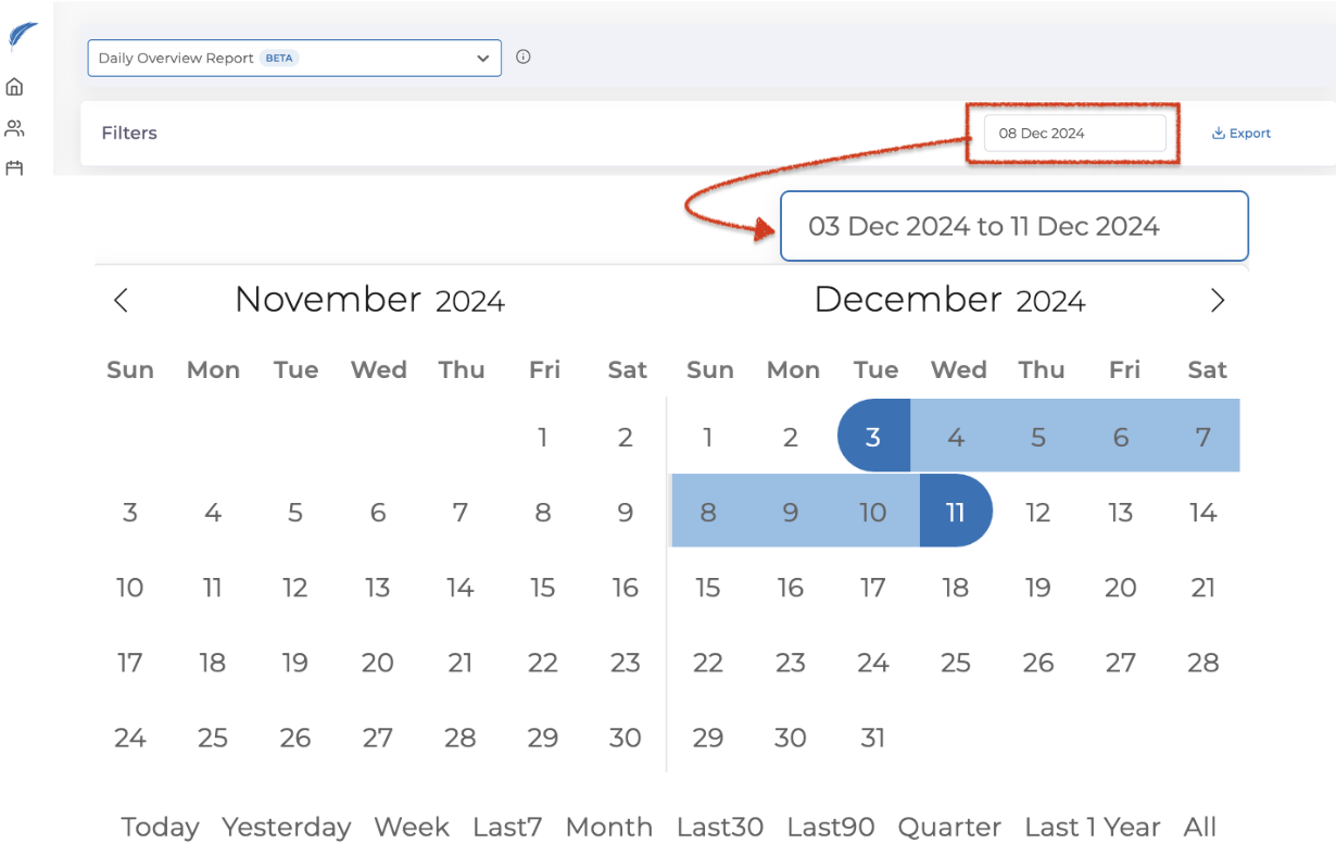 After selecting the type of report you want to view, you can easily choose your desired date range using the Filters section.